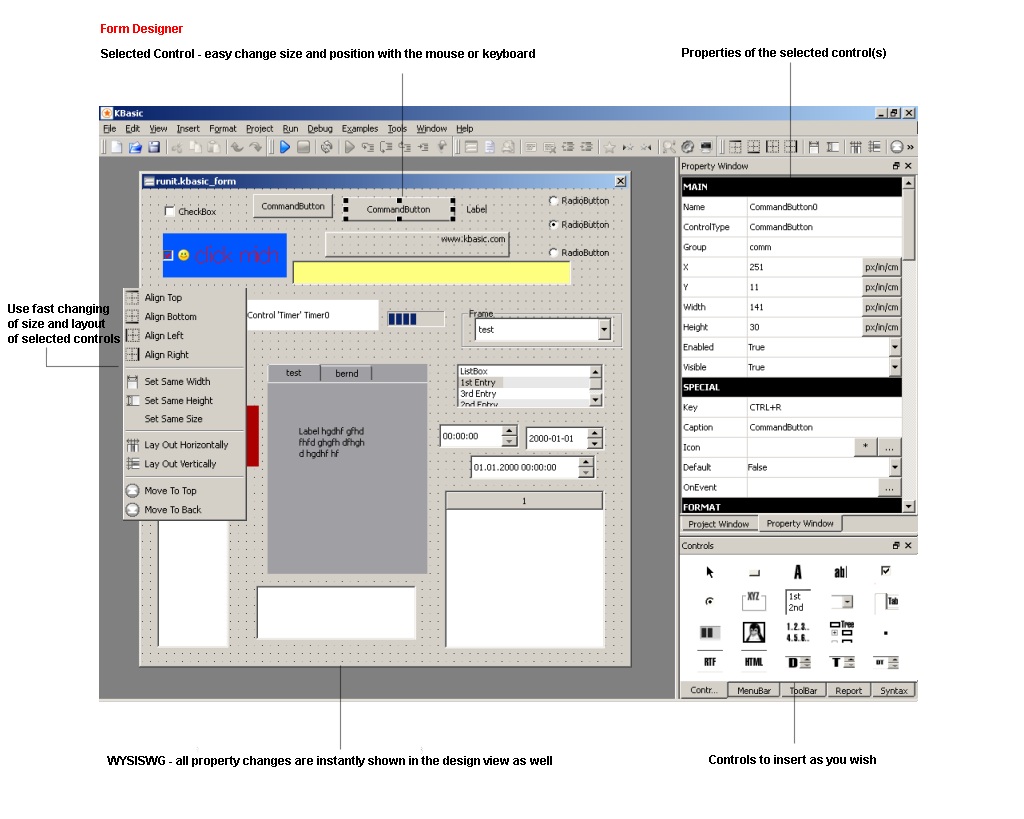 to face a steep learning curve: KBasic uses the familiar visual design paradigm